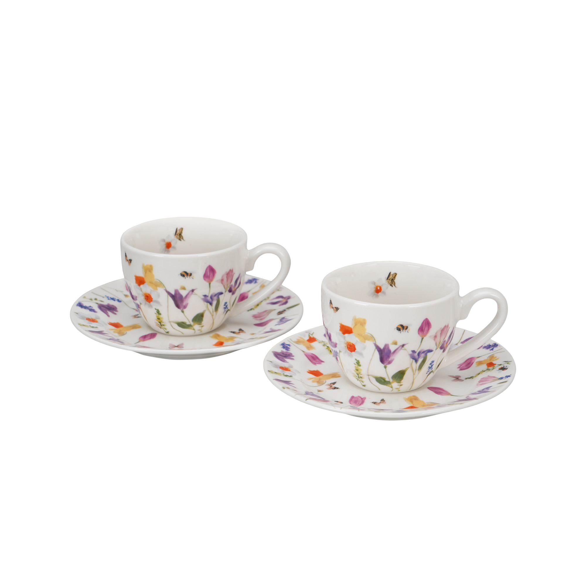 Set van 2 porseleinen espressokopjes & schoteltjes