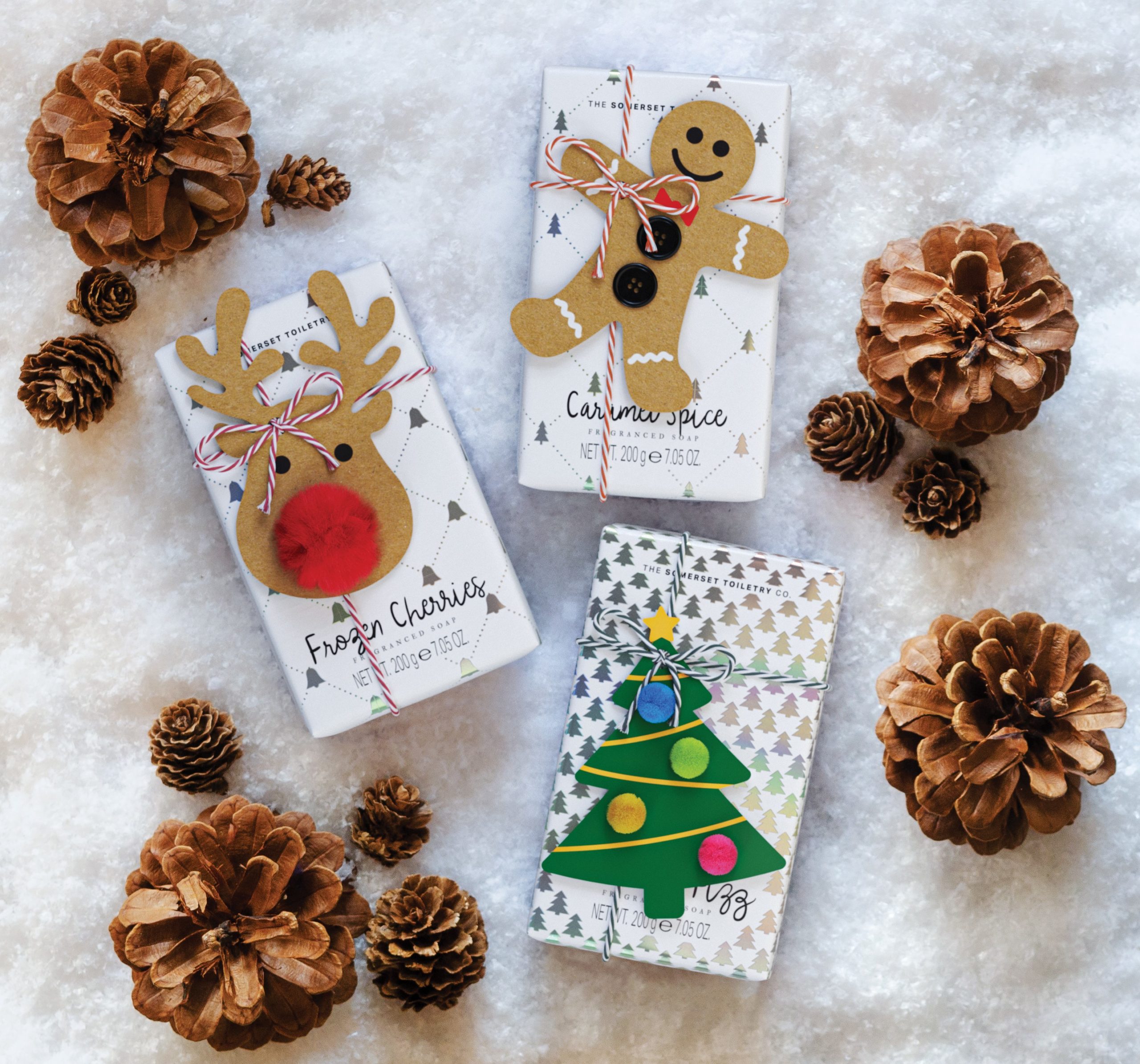 présentoir de 18 savons à 200g avec des décorations fantaisie