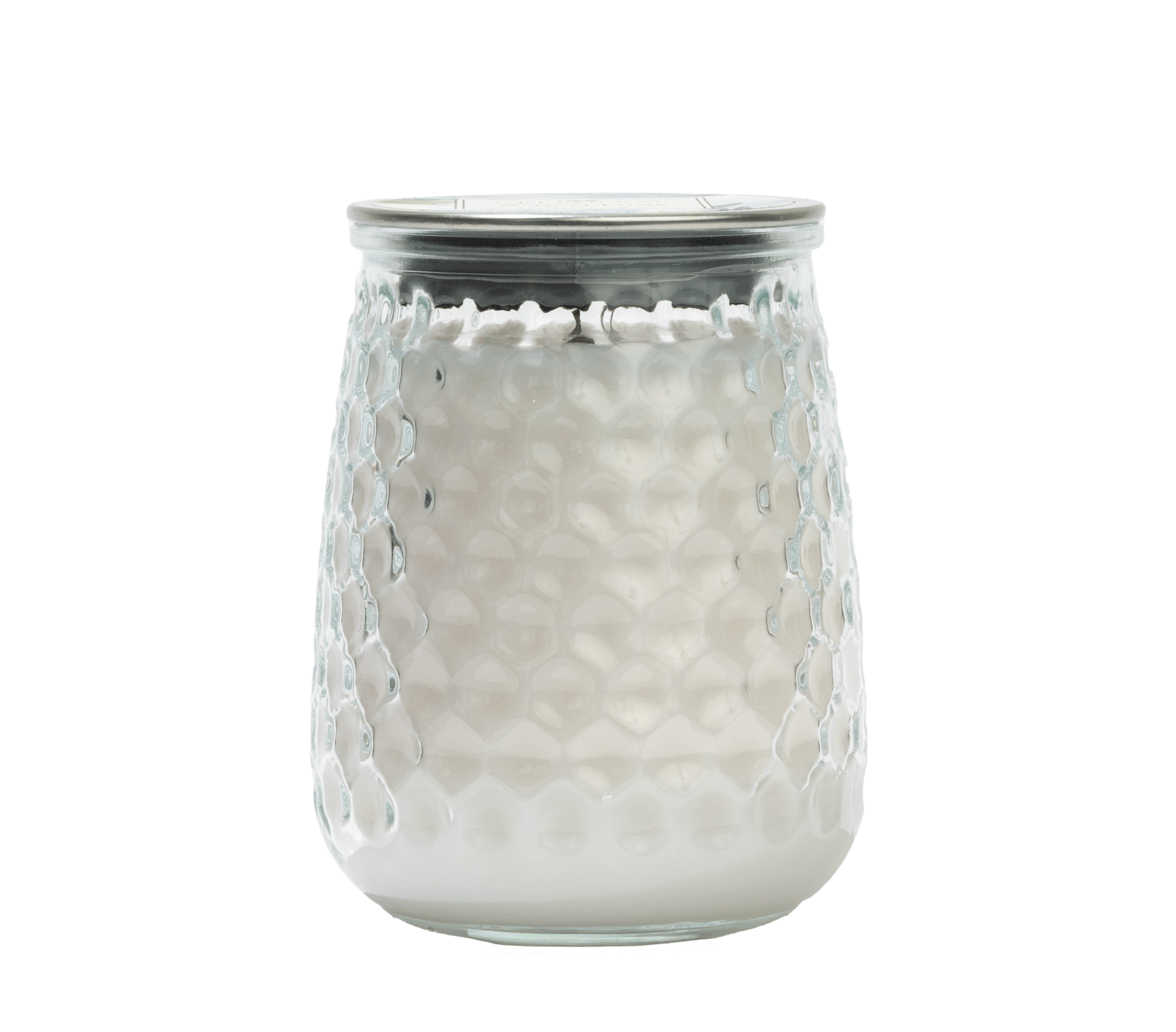 Une grande bougie parfumée, élégante dans un verre avec couvercle